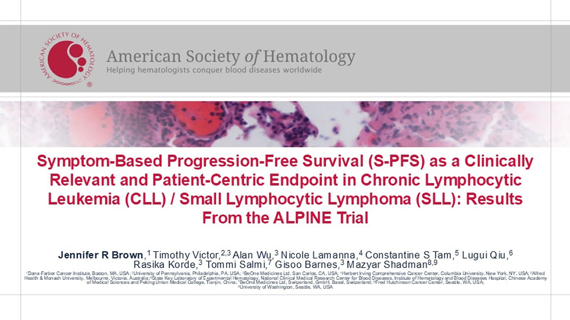Symptom-based progression-free survival (S-PFS) as a clinically relevant and patient-centric endpoint in chronic lymphocytic leukemia (CLL)/small lymphocytic lymphoma (SLL): Results from the ALPINE trial